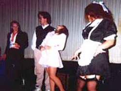 Being the L.A. cast is a job we don't take too seriously. We don't rely much on props and our costumes may not be perfect, but we're all just a bit crazy (Grunt) and we have tons of energy. We always have a pre-show lined up for the audience and often pull a hapless (helpless? *grin*) virgin into parts of the movie (such as the bedroom scene *evil grin*). They ALWAYS cum away happy!